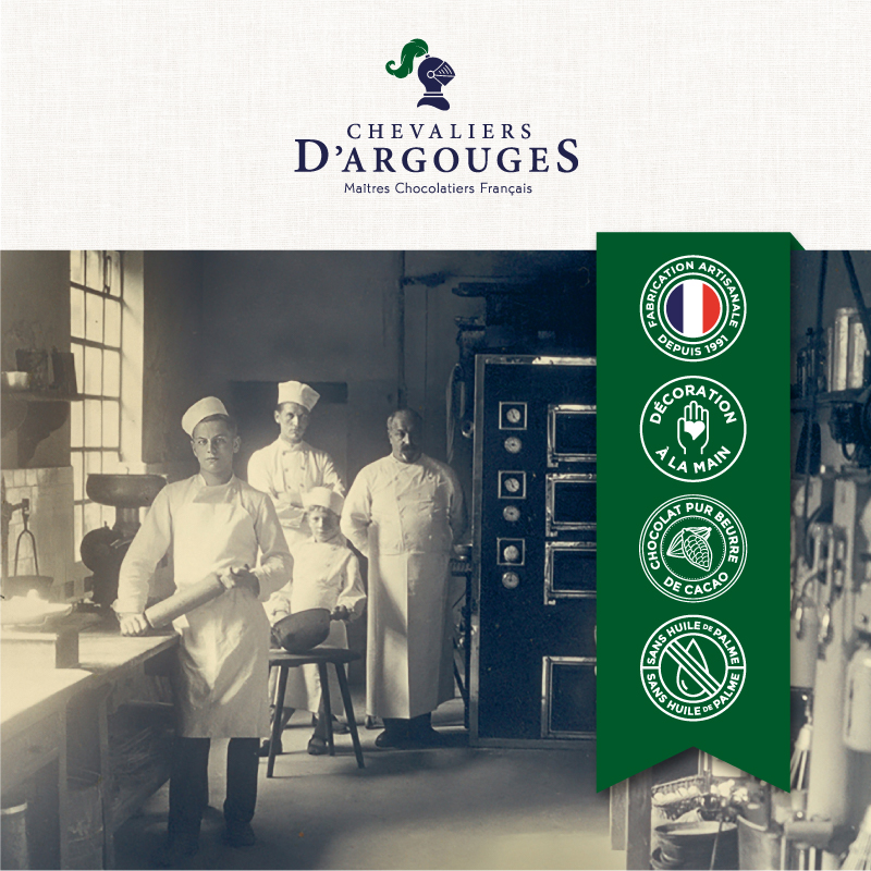 Il n'est pas un membre de Chevaliers d'Argouges qui ne soit passé par les ateliers : chacun doit maîtriser l'ensemble de la réalisation de ces trésors cacaotés. L'ambition des Chevaliers d'Argouges, c'est d'offrir à tous un chocolat de qualité, fort d'un savoir-faire traditionnel.