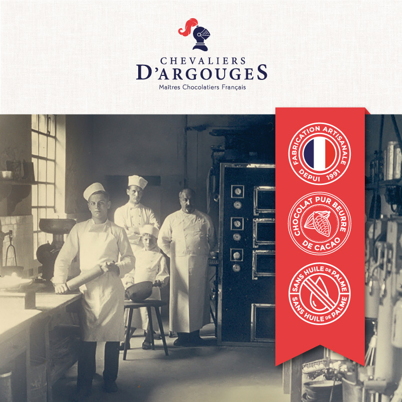Il n'est pas un membre de Chevaliers d'Argouges qui ne soit passé par les ateliers : chacun doit maîtriser l'ensemble de la réalisation de ces trésors cacaotés. L'ambition des Chevaliers d'Argouges, c'est d'offrir à tous un chocolat de qualité, fort d'un savoir-faire traditionnel.
