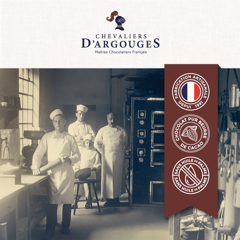 Il n'est pas un membre de Chevaliers d'Argouges qui ne soit passé par les ateliers : chacun doit maîtriser l'ensemble de la réalisation de ces trésors cacaotés. L'ambition des Chevaliers d'Argouges, c'est d'offrir à tous un chocolat de qualité, fort d'un savoir-faire traditionnel.