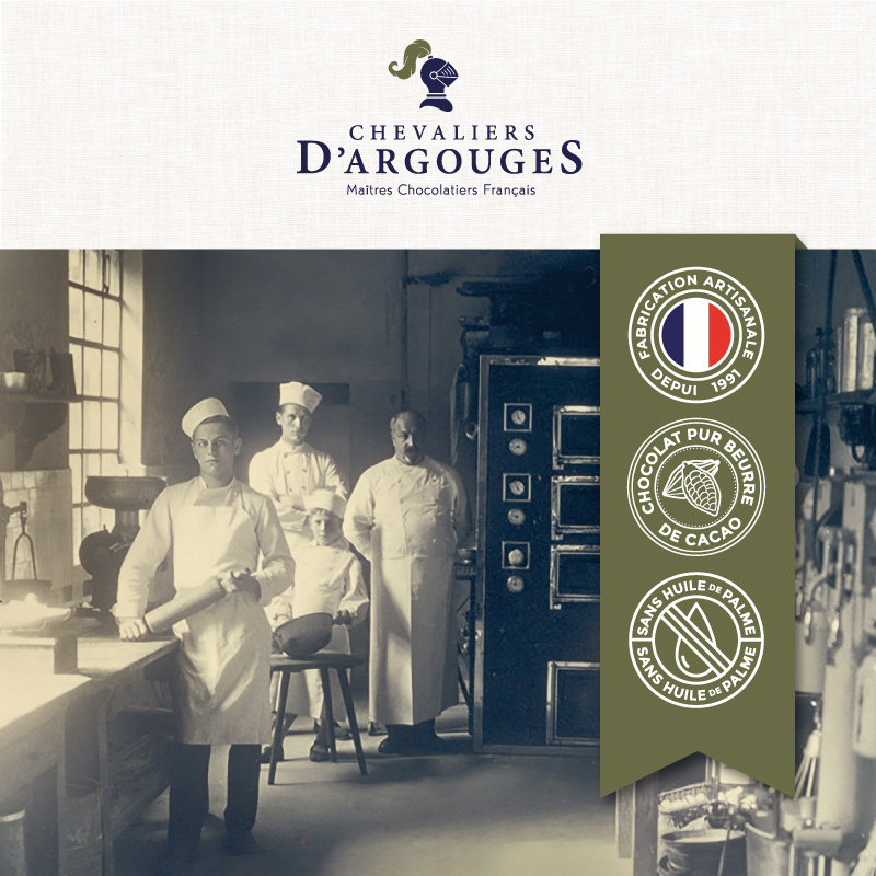 Il n'est pas un membre de Chevaliers d'Argouges qui ne soit passé par les ateliers : chacun doit maîtriser l'ensemble de la réalisation de ces trésors cacaotés. L'ambition des Chevaliers d'Argouges, c'est d'offrir à tous un chocolat de qualité, fort d'un savoir-faire traditionnel.