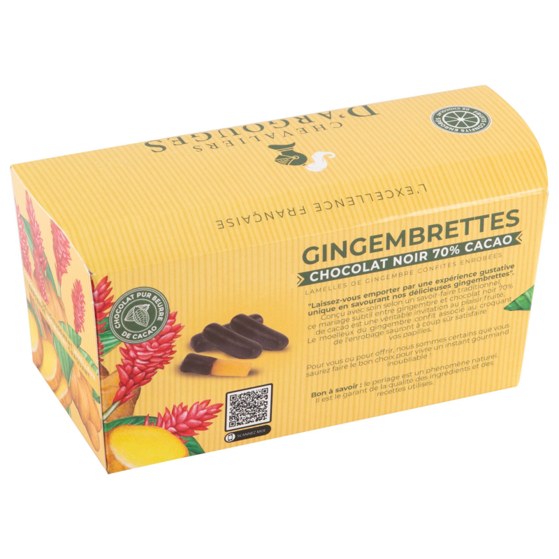 Éveillez vos papilles pour les fêtes avec nos gingembrettes confites enrobées de chocolat noir 70%.