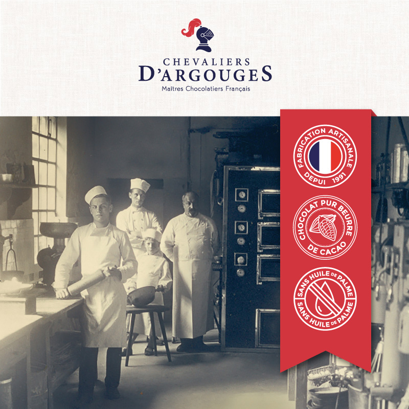 Il n'est pas un membre de Chevaliers d'Argouges qui ne soit passé par les ateliers : chacun doit maîtriser l'ensemble de la réalisation de ces trésors cacaotés. L'ambition des Chevaliers d'Argouges, c'est d'offrir à tous un chocolat de qualité, fort d'un savoir-faire traditionnel.