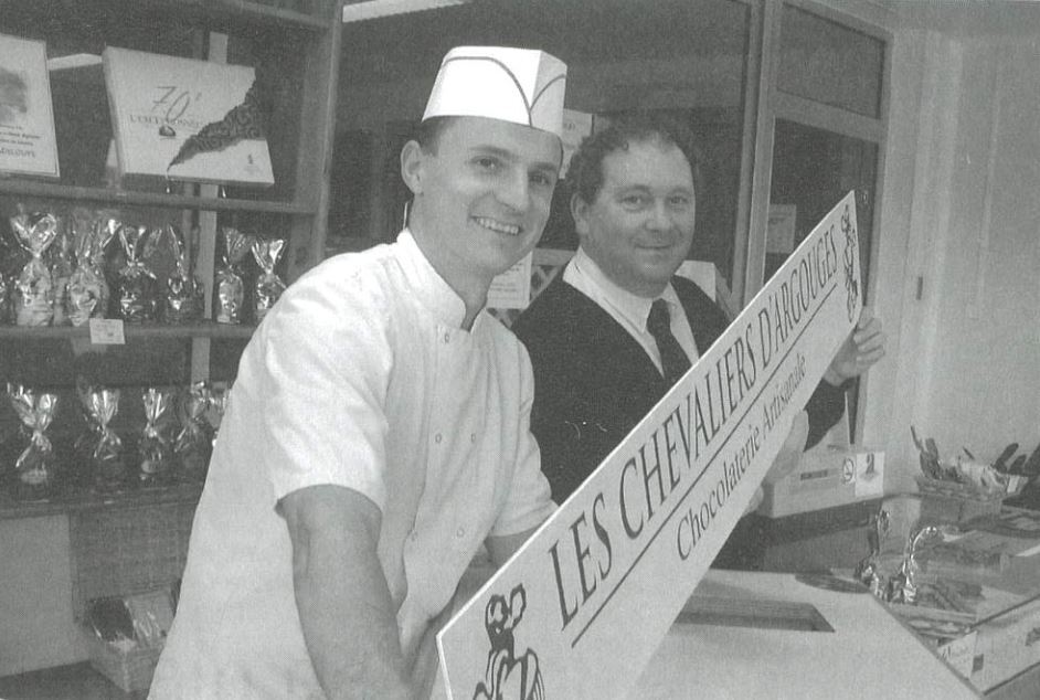 « En 1995, Lionel, le frère de Bertrand, rejoint l’aventure et s’occupe de la partie commerciale : il convainc la grande distribution locale de mettre en rayon les chocolats des Chevaliers. Les gages de qualité (100 % pur beurre de cacao, utilisation de produits issus de l’agriculture biologique, de matières premières labellisées commerce équitable) et la fabrication artisanale séduisent : la marque est référencée en GMS (Continent permet de conquérir des parts de marché dans le Grand- Ouest et en Ile-de-France), »