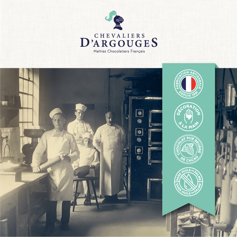 Il n'est pas un membre de Chevaliers d'Argouges qui ne soit passé par les ateliers : chacun doit maîtriser l'ensemble de la réalisation de ces trésors cacaotés. L'ambition des Chevaliers d'Argouges, c'est d'offrir à tous un chocolat de qualité, fort d'un savoir-faire traditionnel.