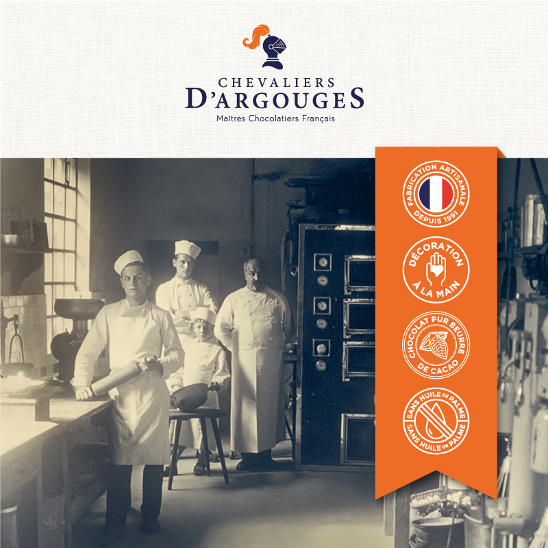 Il n'est pas un membre de Chevaliers d'Argouges qui ne soit passé par les ateliers : chacun doit maîtriser l'ensemble de la réalisation de ces trésors cacaotés. L'ambition des Chevaliers d'Argouges, c'est d'offrir à tous un chocolat de qualité, fort d'un savoir-faire traditionnel.