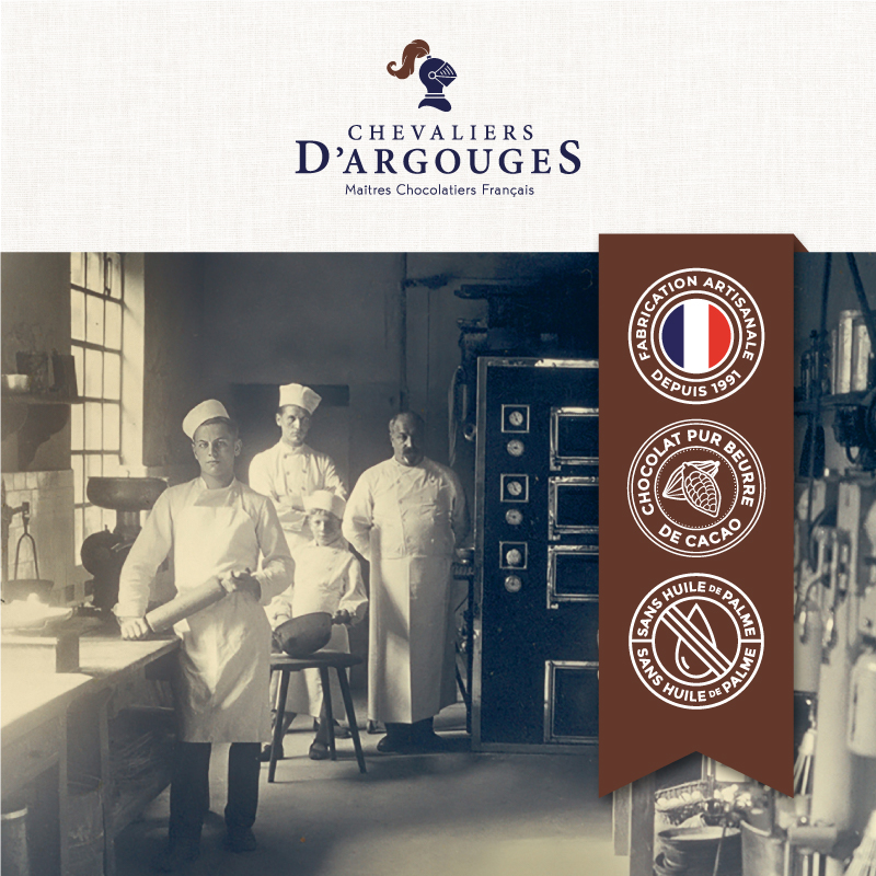 Il n'est pas un membre de Chevaliers d'Argouges qui ne soit passé par les ateliers : chacun doit maîtriser l'ensemble de la réalisation de ces trésors cacaotés. L'ambition des Chevaliers d'Argouges, c'est d'offrir à tous un chocolat de qualité, fort d'un savoir-faire traditionnel.